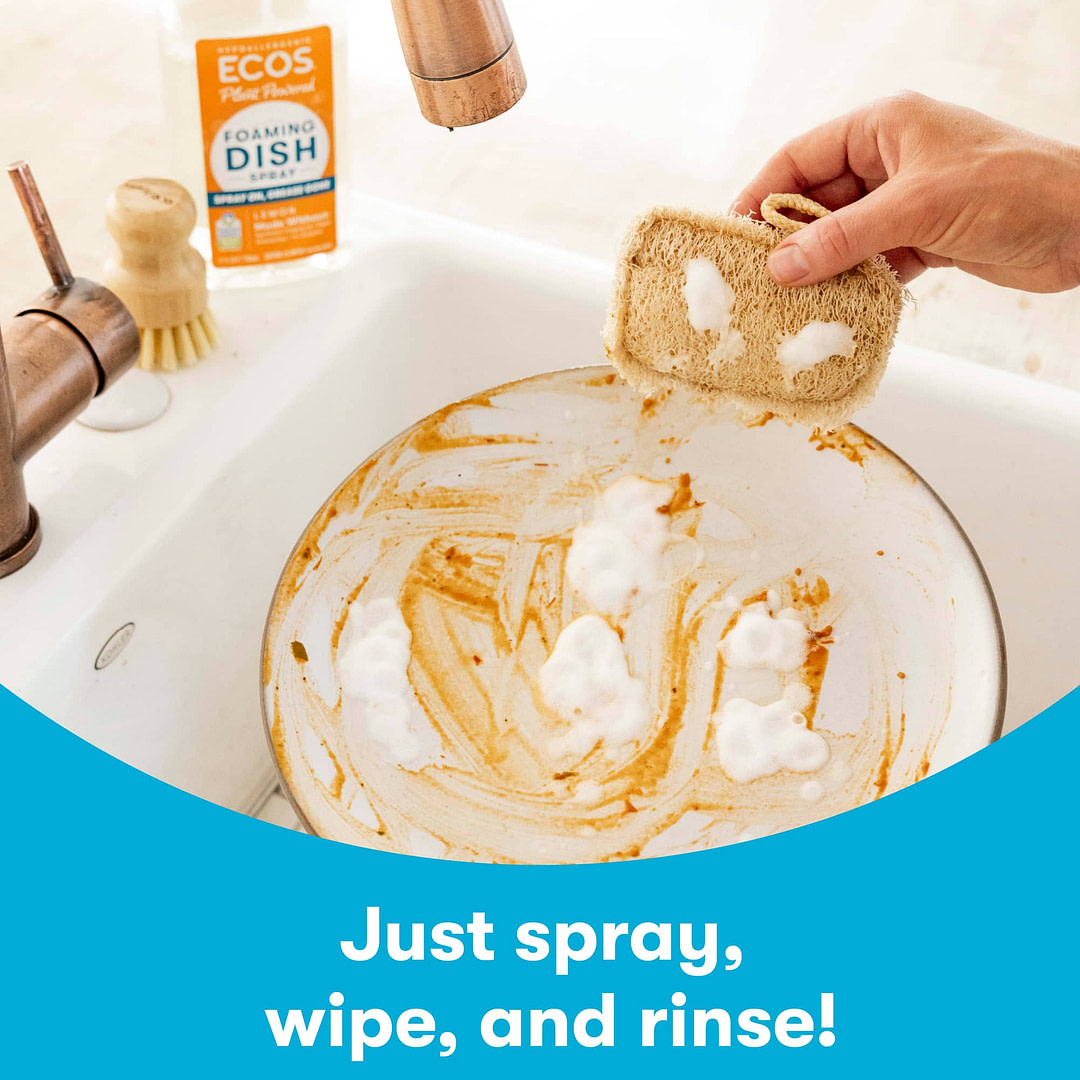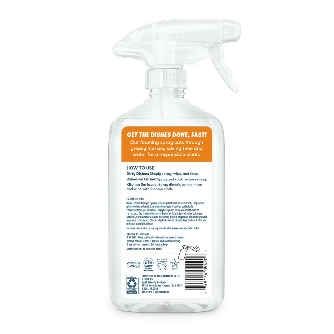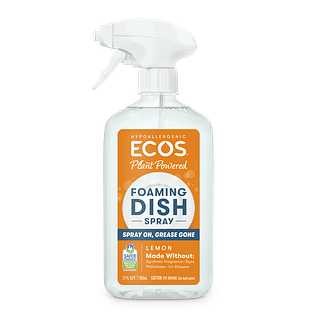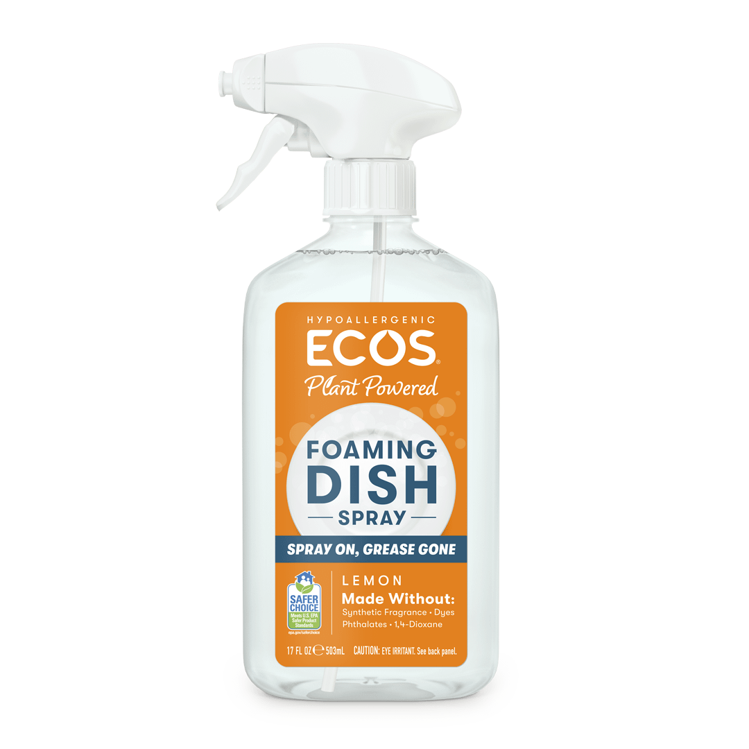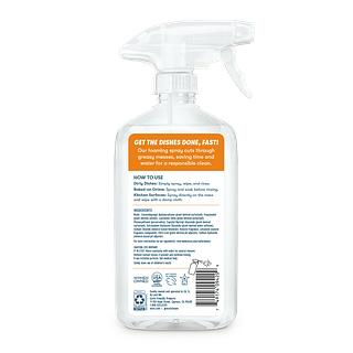 Get the dishes done, fast! Our Foaming Dish Spray cuts through greasy messes, saving time and water for an eco-conscious clean. The powerful spray nozzle delivers a rich, foamy formula right where you need it, blasting away residue and breaking down baked-on bits in hard-to-clean crevices. From casserole dishes to cutlery, experience a safer clean, sans scrubbing—just spray, wipe, and rinse. Available in free & clear, or with the energizing scent of lemon.