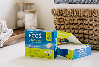 - Wash more efficiently. Fresh linens and towels help guests feel cared for and more likely to return. Wash with cold water using ECOS Laundry Detergent with enzymes—tough on stains, even at low temps. Save energy and extend the life of your fabrics. If possible, skip the dryer and line dry.