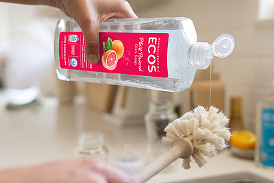 For dishwashing, ECOS® Dish Soap is an ideal choice. This concentrated gel effectively cuts grease while being gentle on your hands, as it contains no harsh chemicals. Just a few drops are enough to clean a large number of dishes, helping you save while demonstrating its eco-conscious and efficient design.