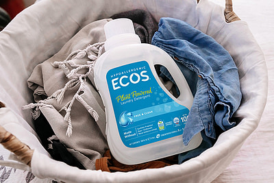 ECOS® Hypoallergenic Laundry Detergent is formulated with several plant-based ingredients—its main cleaning agent is a coconut-derived surfactant! It is made without dyes and artificial fragrances and is safe even for the most delicate skin, including babies’. Use cold or warm water instead of hot, and follow the dosing instructions on the label. Cold water helps save energy, and in fact, a significant portion of energy consumption in washing comes from the energy required to heat the water. This detergent is also effective in quick wash cycles, making it ideal for protecting your clothes while saving energy.