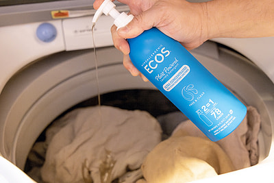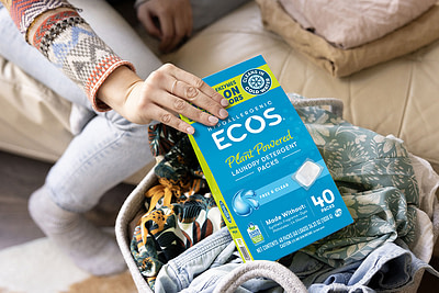 - Choose eco-conscious products: Opt for ECOS detergents and cleaners that are safer for your family, your clothes, and the planet. Our ECOS Hypoallergenic Laundry Detergent with Enzymes is made without phosphates and prevents residue buildup.