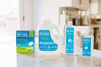Eco-conscious cleaning products use ingredients that don’t contaminate water or air. At ECOS, we’re committed to sustainability. We use plant-based ingredients, have reduced our carbon footprint, and use recyclable packaging, like our ECOS Ultra Concentrated Laundry Detergent packaged in an infinitely recyclable aluminum bottle. By choosing ECOS cleaning products, you’re supporting responsible manufacturing practices that reduce environmental impact and promote a cleaner future.