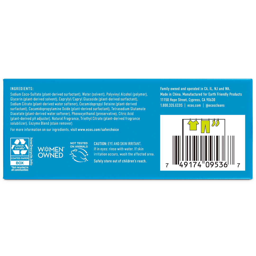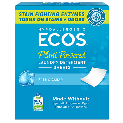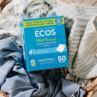 Always follow garment care instructions. Add one sheet with your dirty laundry directly into the washer drum. For hand washing, add directly to water to activate the cleansing power. ECOS Laundry Sheets will dissolve entirely in all water temperatures and are safe to use in high efficiency or standard machines. To take your laundry on the go, make sure to store laundry sheets in a dry, cool place.